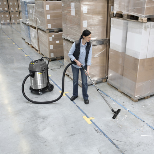Con su depósito de 70 l, el aspirador en seco y húmedo con dos motores NT 70/2 Me Classic aloja grandes cantidades de suciedad gruesa y húmeda. Gracias a la gran potencia de aspiración y al potente filtro de cartucho, cualquier tipo de polvo, líquidos o suciedad gruesa no representa ningún problema. Además, el resistente aspirador está provisto de una práctica manguera de desagüe. Un asa de empuje de serie y el chasis extraordinariamente estable con rodillos de dirección de metal proporcionan unas propiedades de movilidad excelentes