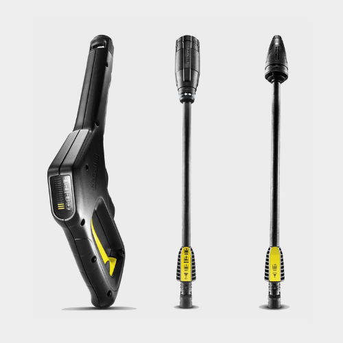 La hidrolimpiadora K 3 Power Control te permite conseguir unos resultados de limpieza perfectos. Para conseguir unos resultados de limpieza aún mejores, descárgate la App Home & Garden de Kärcher. Recibirás prácticos y útiles consejos de trabajo dependiendo de la superficie y el objeto que necesites limpiar. La App también ofrece un servicio completo que incluye información sobre el equipo y su uso así como una base de datos donde localizar respuestas a las preguntas más frecuentes sobre uso, mantenimiento y posibles incidencias. Una vez elegido el nivel de presión, éste se ajusta fácilmente girando la lanza pulverizadora pudiendose comprobar en la pistola G 120 Q Power Control. El cambio de alta presión al modo de detergente se realiza sin cambiar de lanza pulverizadora. Gracias al depósito de detergente integrado en la propia máquina, se consigue una dosificación rápida, cómoda y sencilla. Otras de las características que podemos encontrar en la K 3 Power Control son un asa extensible que permite desplazar y guardar el equipo cómodamente, una base de apoyo que ofrece más estabilidad y a su vez nos puede servir como segunda asa de transporte de modo que resulta muy sencillo subir el equipo a una estantería o meterlo en el maletero del coche. La máquina dispone de varias sujeciones lo que permite almacenar los diferentes accesorios que vienen de serie en el mimo aparato. El sistema Quick Connect de Kärcher facilita la conexión de la manguera de alta presión tanto a la pistola como a la máquina de una manera rápida y sencilla.